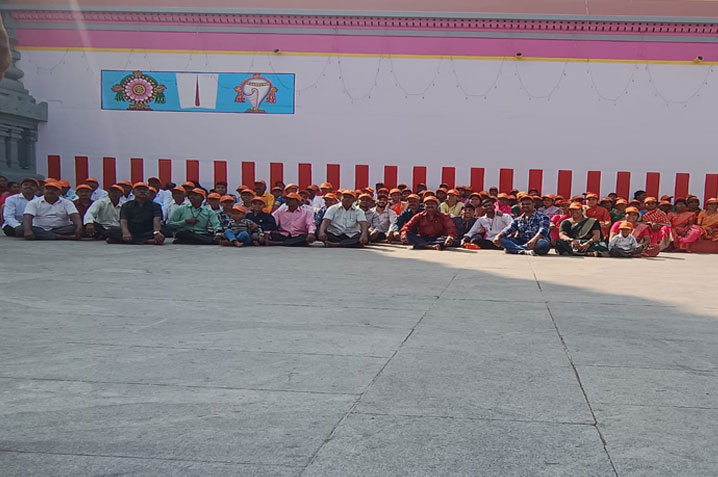 इच्छापूर्ती गणेश मंदिर गोटेवाडी, सर्व भाविक रांगोळी काढताना